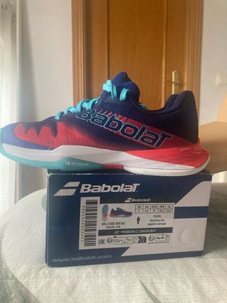 Zapatillas de pádel Babolat Jet Premura 2 Junior en talla 37. - Color: Blue/Poppy Red. - Suela Michelin. - Solo 1 puesta
