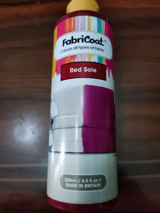 Pintura para tela de la marca FabricCoat. - Color: Red Sole. - Contenido: 250ml / 8.5 fl oz. - Fabricado en Gran Bretaña.