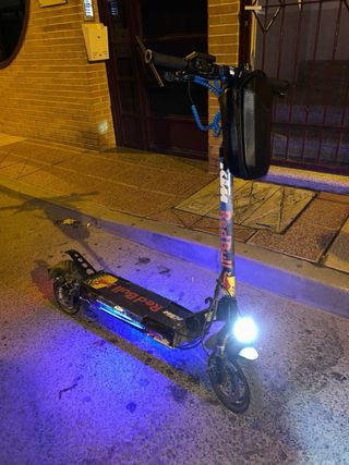 Patinete eléctrico con diseño de Red Bull. - Decoración Red Bull y KTM. - Ruedas delanteras y traseras. - Manillar con acelerador y freno. Lo unico que falla es el freno nutt hidraulico le falta aceite Y el vinilo un poco despegado