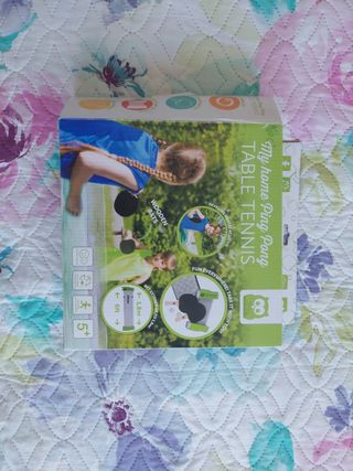 lote de ping pong sin estrenar. Contiene dos raquetas, red ajustable en altura y una pelota.