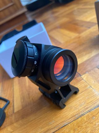 Red dot estilo t1 con elevador. Fabricado en aluminio. Brillo regulable. Regulable en alza y deriva. Se hacen envíos