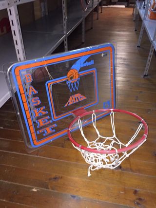 Tablero de baloncesto de metraquilato con aro y red de algodon.Para colgar. Medida del tablero 76 x 3 x 54 cm