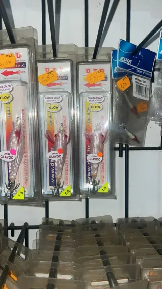 Lotes de señuelos de pesca DTD GLAVOC para calamar. - Varios colores disponibles: azul, cobre, verde y plateado. - Modelos MIX color y full color. - Con efecto GLOW para mayor visibilidad