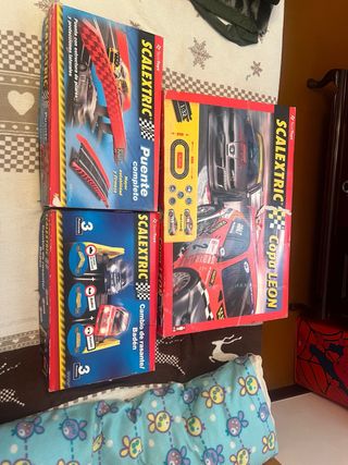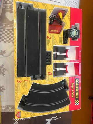 Lote de Scalextric copa leon con dos pistas. -Scalextric copa leon 50€ - Scalextric Puente completo 30 - Scalextric Cambio de rasante/Badén 30€ - Incluye accesorios, los coches se perdieron el lote 100€