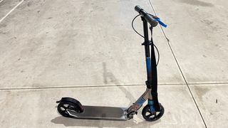 Patinete Oxelo MIS 9 en color gris y azul. Ideal para desplazamientos urbanos. - Manillar ajustable en altura. - Freno trasero. -Plataforma ancha y antideslizante. - Plegable para fácil transporte. -30€ los dos.