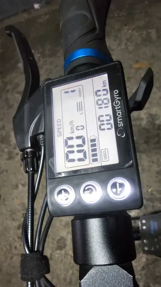 Patinete eléctrico SmartGyro en buen estado. - Pantalla digital con información de velocidad y batería. - Manillar con puños ergonómicos. - Freno delantero. - Tres botones de control en la pantalla.