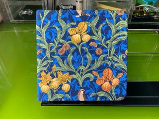 Precioso y de muy buena calidad. Grosor 300g, 12x12cm. Grano medio. Algodón 100%, tapa forrada con tela.