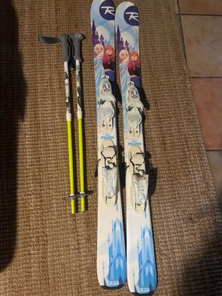 Conjunto de esquís y bastones con diseño de Frozen para niñas. Perfecto para iniciarse en el esquí. - Esquís con fijaciones. - Bastones a juego. - Diseño inspirado en la película Frozen.
