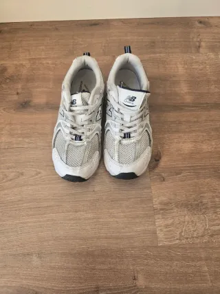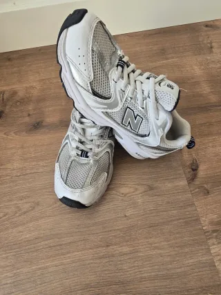 Playeras para niña de la marca New Balance. Son cómodas y ligeras, perfectas para el día a día. - Color blanco y plateado. - Cierre de cordones. - Detalle de logo en la lengüeta y laterales.