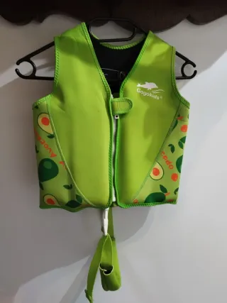Chaleco salvavidas de la marca GOGOKIDS con un divertido estampado de aguacates. Ideal para los más pequeños. - Talla L, aproximado hasta 4 años. - Color verde brillante. - Cierre de cremallera frontal. - Tirantes ajustables.