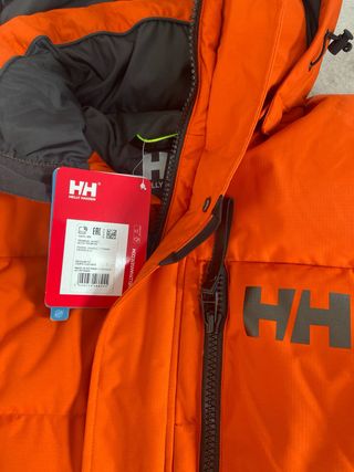 Chaqueta Helly Hansen de color naranja, modelo Promose Patrol. - Talla S. - Diseño acolchado. - Capucha integrada. - Bolsillos frontales con cremallera.