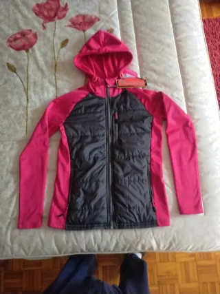 Cortavientos ligero con diseño bicolor. Talla. X S entallado - Cuerpo calentito en gris - Mangas y capucha en color rosa. - Cremallera frontal. - Bolsillos laterales con cremallera.nuevo sin estrenar