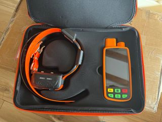 Localizador eSEEK con collar y mando a estrenar - Conjunto con todos los accesorios - Collar de color naranja. - Mando con pantalla y botones. - Mando con funda de silicona y protector