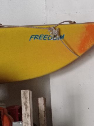 Canoa canadiense, para dos adultos, pueden llegar a ir 3 , tres juegos de remos. Es para agua dulce , muy espaciosa, regalo también tabla de windsurf preparada para hacer paddle surf. La canoa se encuentra en el pantano del Burguillo.