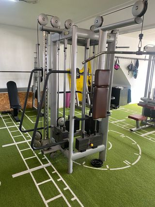 Multigimnasio profesional JBS con 100kg de peso. - Diseño robusto y duradero. Muy suave y comoda. - Ideal para entrenamientos completos en casa. - Diseño profesional, ergonomia diseñada para un uso exigente y avanzado. - Polea alta para jalon, polea baja para remo, extension de cuadriceps/femoral de pie, aperturas de pecho, aperturas de hombro posterior. - Asiento regulable en altura y extraible. - Incluyo un asiento para hacer remo sentado delante de la maquina. - Está a pie de calle para recoger fácilmente, pero sigue montada. home gym, comercial, jalones, peck deck, strenght, titanium, force usa, fitness, gimnasio, espalda