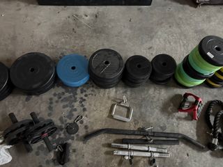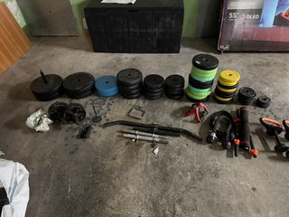 Discos 28 mm 2 mancuernas de 2kg 1 barra recta 10 kg 1 barra z 8 kg 4 x 10 kg 2 x 5 kg 10 x 2.5 kg 8 x 1.25 kg 10 x 1 kg 4 x 0,5 kg Discos 25 mm 4 x 5kg 4 x 2.5 kg 4 x 2 kg Barras mancuernas y largas plástico Agarré kettelberg x2 Poleas Polea alta anclaje pared Polea baja anclaje pared Agarré remo Agarré monolatetal Barra ancha Barra recta Cuerda tríceps x2 Soporte para discos en pole x2 Banco multifunción Barras paralelas Debido a su peso no se puede enviar