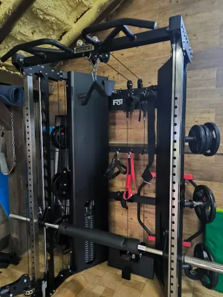 máquinas gimnasio Force USA C10. Doble polea cruces con brazos, máquina Smith. Rack, multitud de accesorios sin abrir. dos poleas para hacer Jalón con 100 kilos reales y 2 poleas para hacer remo con 200 kilos reales. Máquina Smith. Nuevecita. Accesorios sin abrir. Estaría dispuesto a desmontar y acercar si no es muy lejos. Por lesión se vende sin uso - Estructura robusta de acero. - Sistema de poleas de alta calidad. - Incluye barra multipower. - Diseño compacto para optimizar espacio.