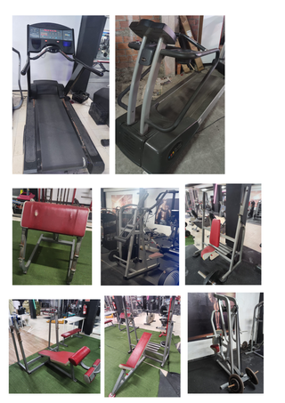Se vende equipo de gimnasio completo, ideal para entrenar en casa/centro de entrenamiento personal. - Máquina de Piernas, Hack / Prensa. - Cinta de correr, Distintas velocidades e inclinación. - Mancuernas de 2,5 a 36Kg regulable. - Espejo a medida con bordes reforzados. - Máquina espalda, Jalón / Remo (1:1), posibilidad añadir más peso de 100Kg. - Máquina Doble Poleas (1:1) (2:1). - Multipower. - Banco Plano/Reclinado/Declinado. - Discos todos los pesos 4x (25,20,15,10,5, 2,5 1,25). - Saco de boxeo con Guantes 8oz y 12oz. - Suelo 12-15 láminas de caucho 1 cm. - Multiples Agarres para Espalda, Unilaterales. NO VENTA INDIVIDUAL