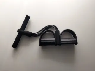 Equipo de ejercicio para tonificar y fortalecer. - Dos asas de espuma para un agarre cómodo. - Bandas elásticas resistentes. - Diseño compacto y portátil.