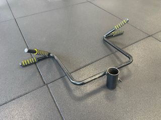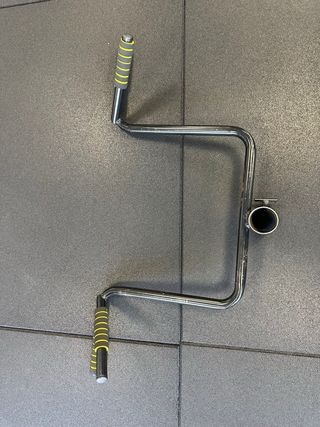Accesorio de gimnasio para ejercicios de remo. - Diseño en forma de T. - Empuñaduras acolchadas para mayor comodidad. - Construcción metálica robusta.