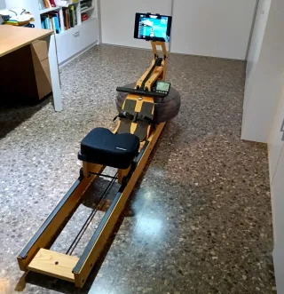 🌊 WaterRower original de madera, remo de agua premium que ofrece una sensación de remo real, suave y envolvente, como si estuvieras remando en el mar. El sonido del agua acompaña cada palada, creando una experiencia relajante y natural. 💧 Resistencia por agua progresiva y silenciosa 📊 Monitor WaterRower S4 📱 Incluye soporte oficial de madera para tablet o móvil + kit de limpieza 🏁 Compatible con apps de entrenamiento y competiciones online Se guarda en vertical. Recogida en mano.