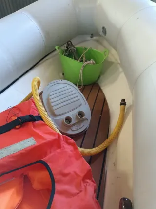 Neumática Yamaha Air Sti 275 bien conservada. Factura de compra de diciembre del 2021. Se entrega con ruedas de botadura, remos, banco de madera y bolsa porta objetos para debajo del banco. Suelo y quilla hinchable. Eslora 270 cm Manga 154 cm Matriculada para mar hasta 2 millas. Envío a cargo del comprador.