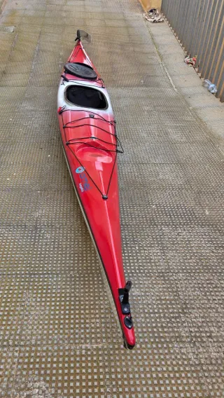 Kayak de mar de aproximadamente 5 metros de eslora. Ideal para travesías y exploración costera.Con funda, remo, cubrebañera, vela, timón con los pies, y tambuchos de gran capacidad. En NUEVO PORTIL CARTAYA. - Diseño alargado para mayor velocidad y estabilidad. - Material resistente para uso en agua salada.