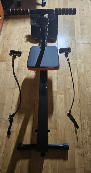 Máquina de remo para hacer ejercicio en casa. Está en buen estado y lista para usar. - Perfecta para ejercitarte en casa. - Diseño compacto y fácil de guardar. - Asiento cómodo y resistente.