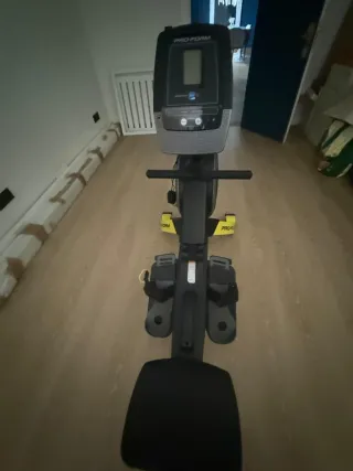 Máquina de remo Proform en buen estado. Ideal para entrenar en casa. - Diseño plegable para fácil almacenamiento. - Pantalla digital para seguimiento de ejercicios. - Pedales ajustables para mayor comodidad.