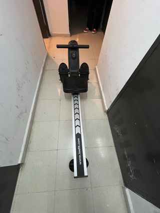 Máquina de remos comprada hace dos años. Poco uso. Le falta la pantalla LCD, de ahí su precio. Funciona perfectamente Tiene ruedas para facilitar el transporte.