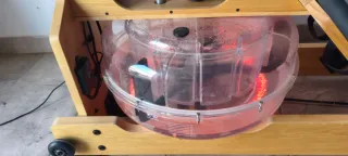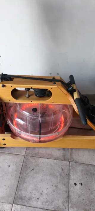 Máquina de remo con diseño de madera y depósito de agua. - Estructura de madera. - Depósito de agua transparente. - Luces LED rojas integradas.