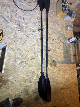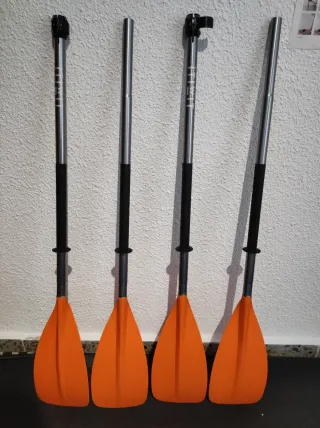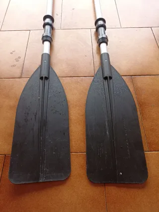 Se venden dos remos usados una sola vez. Son desmontables, marca decathlon. Se pueden comprar por separado 1 remo: 20 euros 2 remos: 30 euros