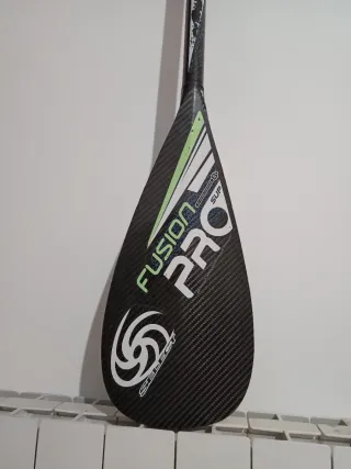Remo de paddle surf de carbono, modelo Fusion Pro. - Pala de carbono. - Diseño ligero y resistente. - Marca Select. Remo ideal para olas, de carbono, ligero y resistente. Está recortado por un experto del mundo del surf a 1.75cm (ya que su tamaño original era de 1.95cm aprox.). Esta perfecto, no tiene daños ni entra agua en él. Nuevo costaba +de 300€. Lo vendo pq ya no practico este deporte.