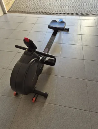 Máquina de remo Cecotec completamente nueva, aún en su caja original. - Sin usar. - Conserva embalaje original. Drumfit Rower 9000 Regatta Máquina de remo con sistema de resistencia magnética y 8 niveles de intensidad. Volante de inercia 9 Kg. Pantalla LCD. Estructura plegable de forma vertical. Reposapiés con correas ajustables y ruedas de transporte. Soporte para dispositivos. Peso máximo de 110 kg y altura máxima 190 cm. Nos costó 250€, la vendo por traslado y no nos dio tiempo a usarla y tenemos otra exactamente igual.