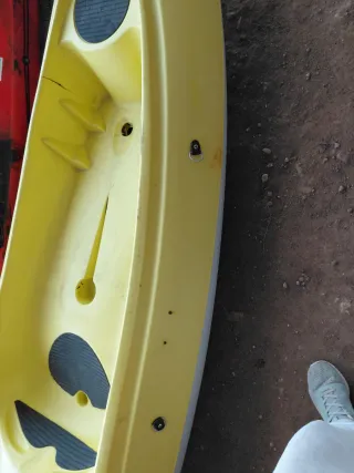 Kayak de color amarillo, ideal para disfrutar del agua. Lo he usado para meter linias pesca ,no buelcas vastante ancho y no pesa nada tiene un cañero asiento y remo . - Diseño abierto para fácil acceso. - Asiento con textura antideslizante. - Anillas de sujeción laterales.