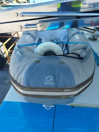 Bote inflable de la marca Zodiac, ideal para actividades acuáticas. - Diseño en color gris y blanco. - Motor Yamaha four stroke 9.9 cv - incluidos un par de remos. Precio negociable