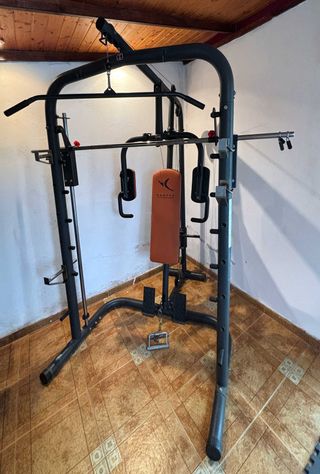 💪 Ideal para entrenamientos completos en casa. Mejor precio en Wallapop para esta maquina. Permite entrenar con seguridad - incluso con peso elevado, gracias al mecanismo "smith" incorporado. Banco y rack aceptan hasta 250Kg. Mecanismo de cable para triceps, lats, remo, etc. Estructura muy robusto. Dueño original - bien conservado, con desgaste de uso habitual. Ayudo a desmontar (podemos grabar un video), y entrego instrucciones de montaje en PDF. Transporte y montaje a cargo del comprador. 💶 Precio negociable. 🏋🏼 2,10m altura, 2,10m largo (con banco), 2,00m ancho 🤝 Opción de comprar sin el banco (solo jaula)