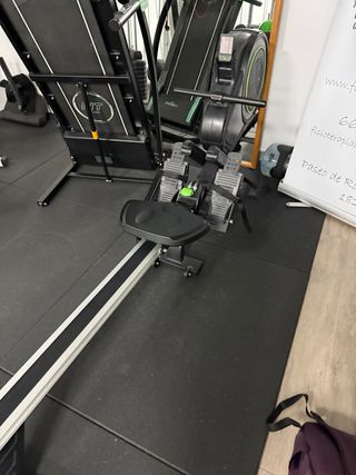 Vendo máquina de remo plegable, ideal para espacios reducidos y para guardar tras el ejercicio. Marca Domyos 100. Prácticamente nuevo, con poco uso. Viene con dos cuerdas con distintas resistencias. - Perfecto estado. - Fácil de plegar y guardar. - Diseño compacto y ligero. - Peso máximo 110 kg.