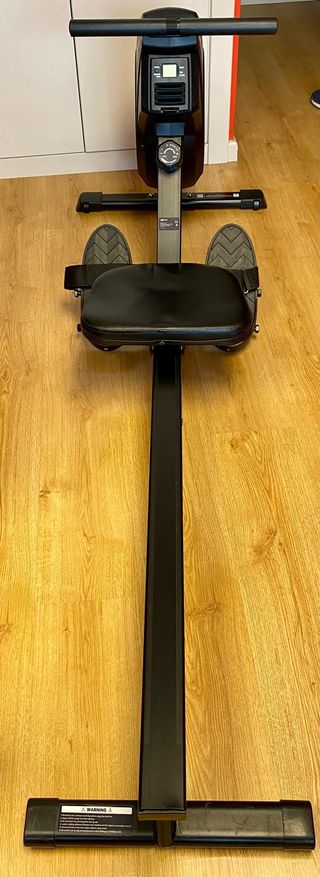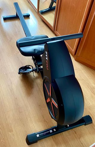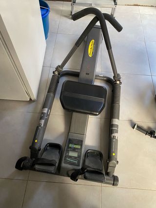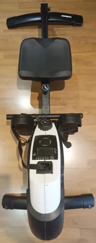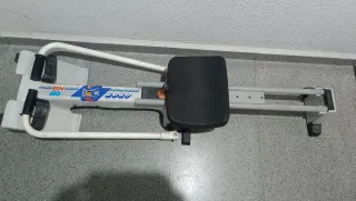 Máquina de remo para ejercitarse en casa. Cuenta con un diseño compacto y funcional. Se pliega. Casi sin uso, no he tenido tiempo para ella. - Pedales ajustables con correas. - Asiento acolchado. - Dial multifuncion