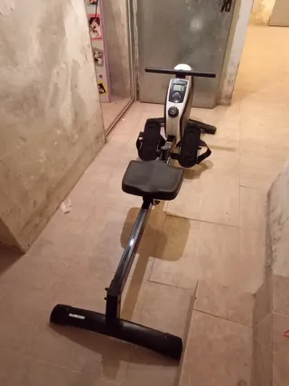 Máquina de remo en perfecto estado, sin usar. - Diseño moderno y funcional. - Asiento acolchado para mayor comodidad. - Pedales ajustables. - Pantalla digital para seguimiento del ejercicio.