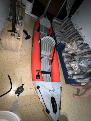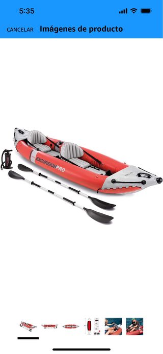 Kayak hinchable Intex Excursion Pro, ideal para dos personas. Incluye remos y bomba de inflado. - Color rojo y gris. - Asientos inflables. - Diseño resistente.