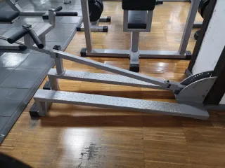 Máquina de remo en apoyo Hammer Strength, en buen estado. - Perfecta para entrenar espalda y brazos. - Estructura robusta y resistente. - Incluye barra y agarres.