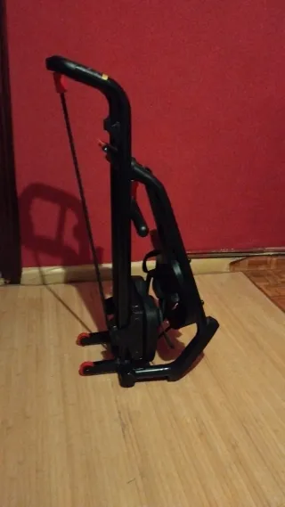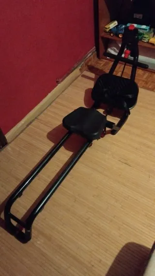 Máquina de remo en buen estado, solo le falta la cuerda dura. - Estructura metálica negra. - Asiento acolchado. - Reposapiés.