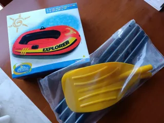 Barca hinchable Intex Explorer de 147x84 y remos de 124cm. - Diseño en color rojo y amarillo. - Modelo Explorer. - Incluye remos.