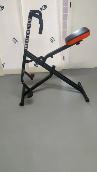 Máquina de ejercicios Total Crunch para trabajar el abdomen. Diseñada para un entrenamiento completo. - Estructura metálica. - Asiento acolchado naranja. - Mangos ergonómicos. No se hacen envíos