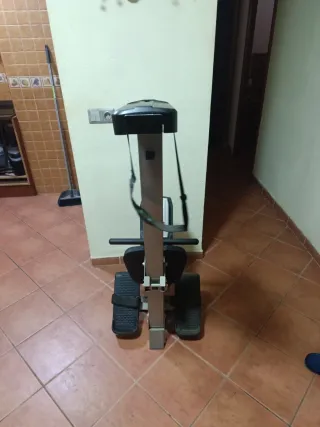 Máquina de remo en perfecto estado, sin uso previo. - Diseño compacto y funcional. - Asiento acolchado para mayor comodidad. - Pedales ajustables. - Pantalla digital para seguimiento del ejercicio. - intensidad fuerza ajustable -totalmente plegable, ocupa muy poco espacio, para bajo de cama o detras de puertas. Solo necesita limpieza superficial del polvo por estar en trstero del garaje. Se nota q no se ha usado por el asiento y porque no hay marcas de las ruedas en el rail. La pantalla digital ni se ha instalado. Ver foto