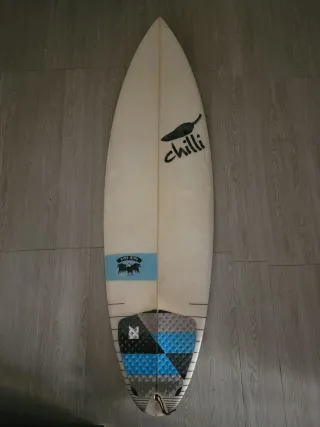 Tabla de surf Chilli 5.8 Tiene muy buena remada y maniobrabilidad Ligera y perfecta para dias de 1.5m Una pequeña reparación bien hecha y luego algun bollito del propio uso pero sigue yendo como el primer dia. Vendo por falta de uso