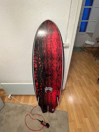 Tabla de surf Catch Surf Round Nose Fish de 5'5. En perfecto estado, sin daños, solo capa de cera por el último uso. - Medida: 5’5 y 42 litros - Marca: Catch Surf / Odysea / Beater - Viene con leash (5' beater) y aletas La RNF, disponible en el emblemático tamaño de 5 pies y 5 pulgadas, está diseñada para disfrutar al máximo del surf en cualquier condición, desde olas pequeñas y desordenadas hasta olas limpias y altas. Ideal para niños o adultos con experiencia, es una tabla fácil de remar y que permite coger o - Diseño de olas con salpicaduras rojas y negras. - Logo de Lost Surfboards en el centro. - Aletas incluidas.