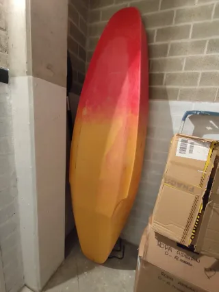 Solo usado algún verano ,lo vendo porque apenas lo uso, tiene alguna marca de uso por abajo,pero nada que impida su uso ni sea relevante, lo tengo en e deta de ebro aunque lo puedo acercar a zargoza con una fianza Carro para transporte. Diseñado para facilitar el traslado - Estructura de aluminio. - Ruedas neumáticas SOPORTE adicional de caña movil en todos los sentidos más 4 integrados en el kayak Remos Chaleco salvavidas Entrego asiento original y otro aparte marca bic, no salen en las fotos los tengo guardados ,los doy con el kayak Ancla casera y muy efectiva con 10 m de cuerda Caja estanca y saco para los compartimentos