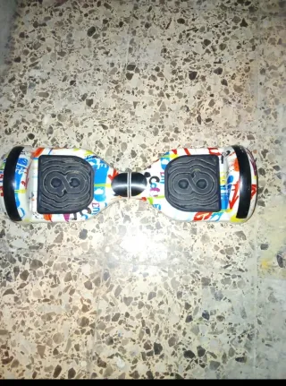 Patinete eléctrico tipo hoverboard con un diseño moderno y llamativo. - Ruedas con luces LED. - Superficie antideslizante para mayor seguridad. - Diseño con grafitis de colores.